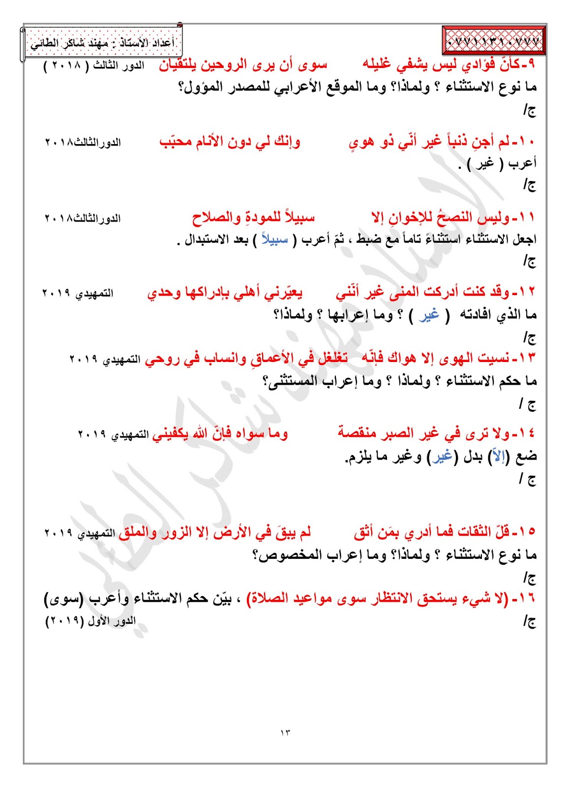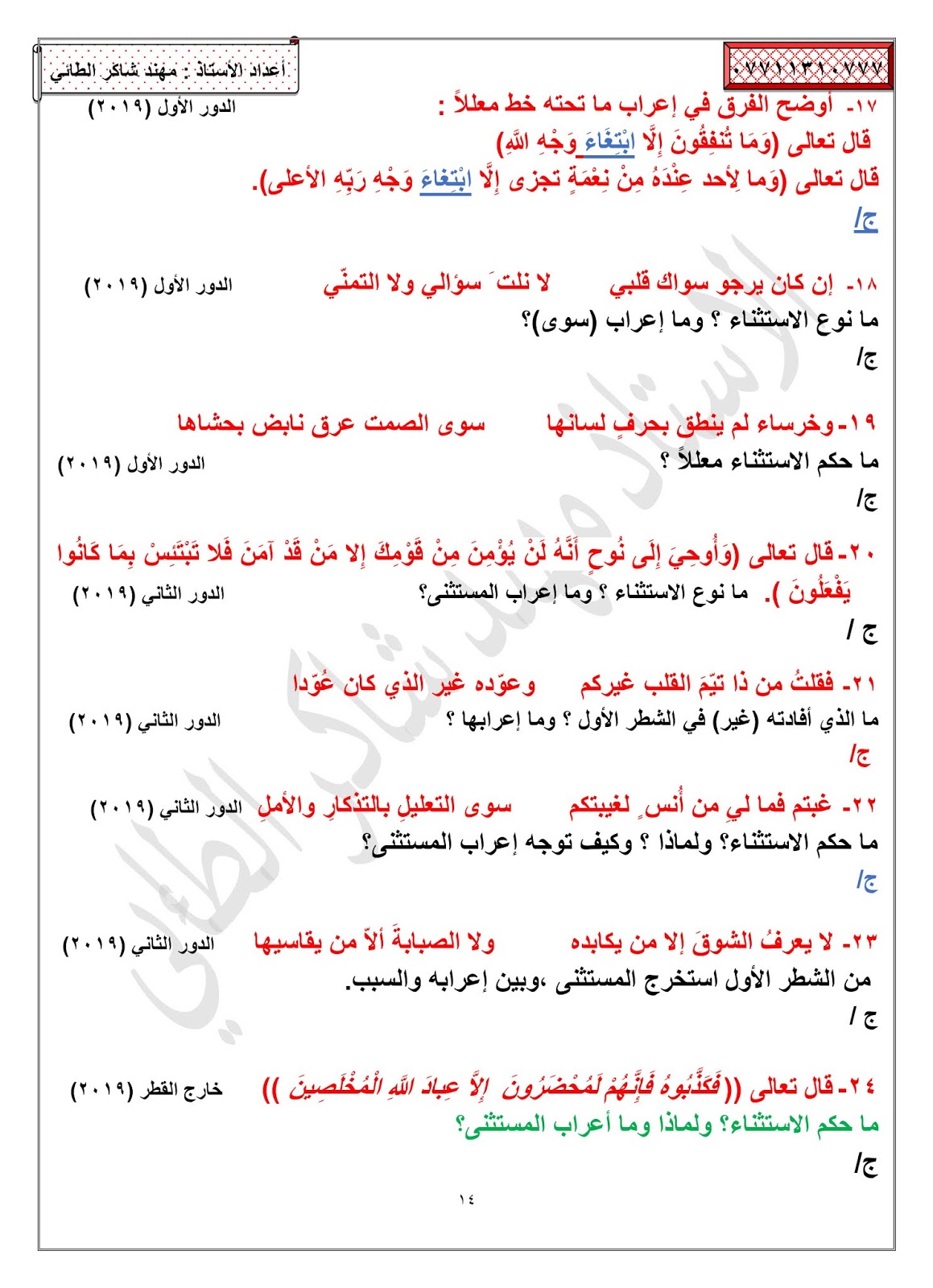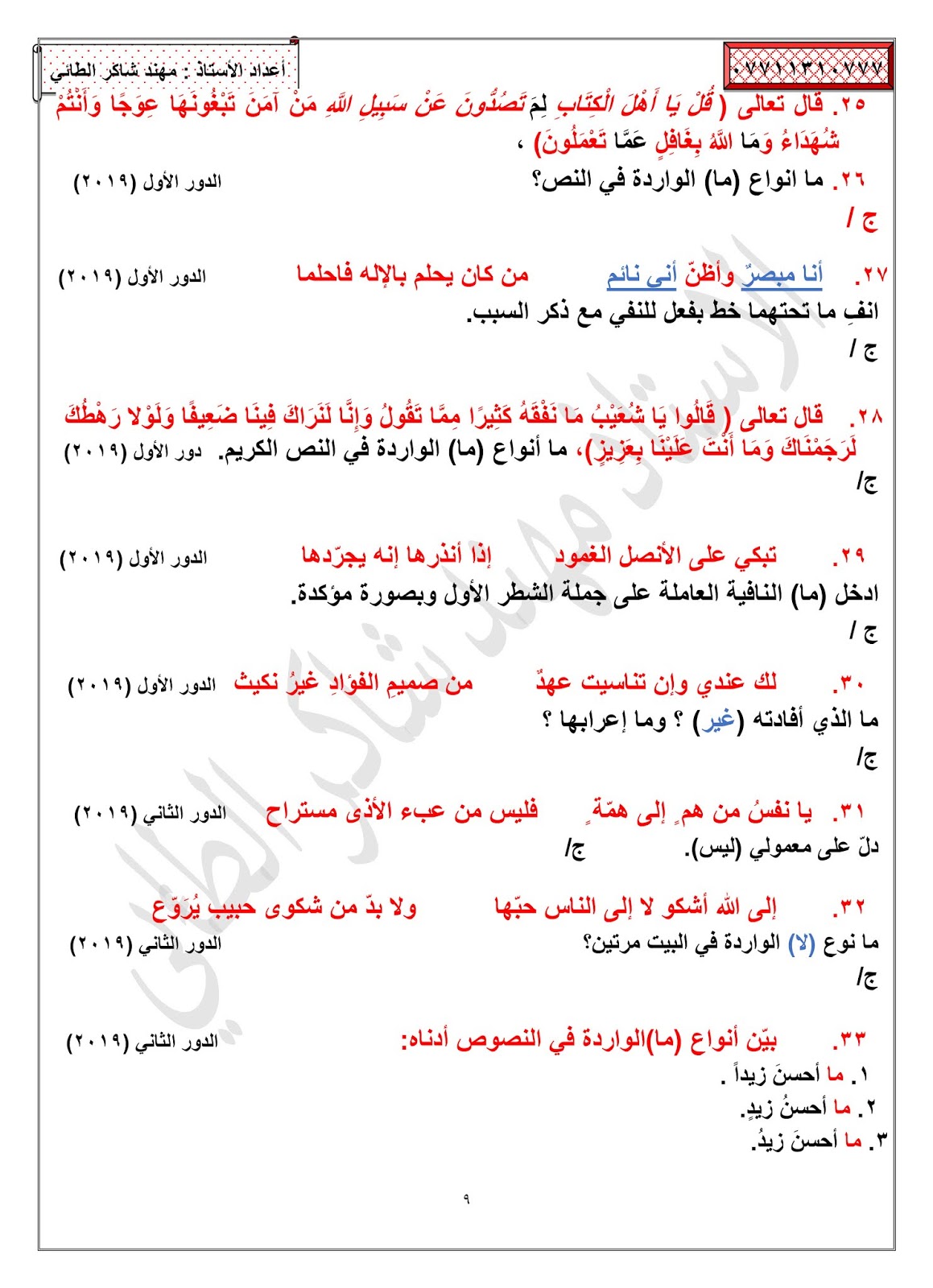 الاسئله الوزاريه المكرره لقواعد اللغه العربيه للسادس الاعدادي للعام 2020 2019