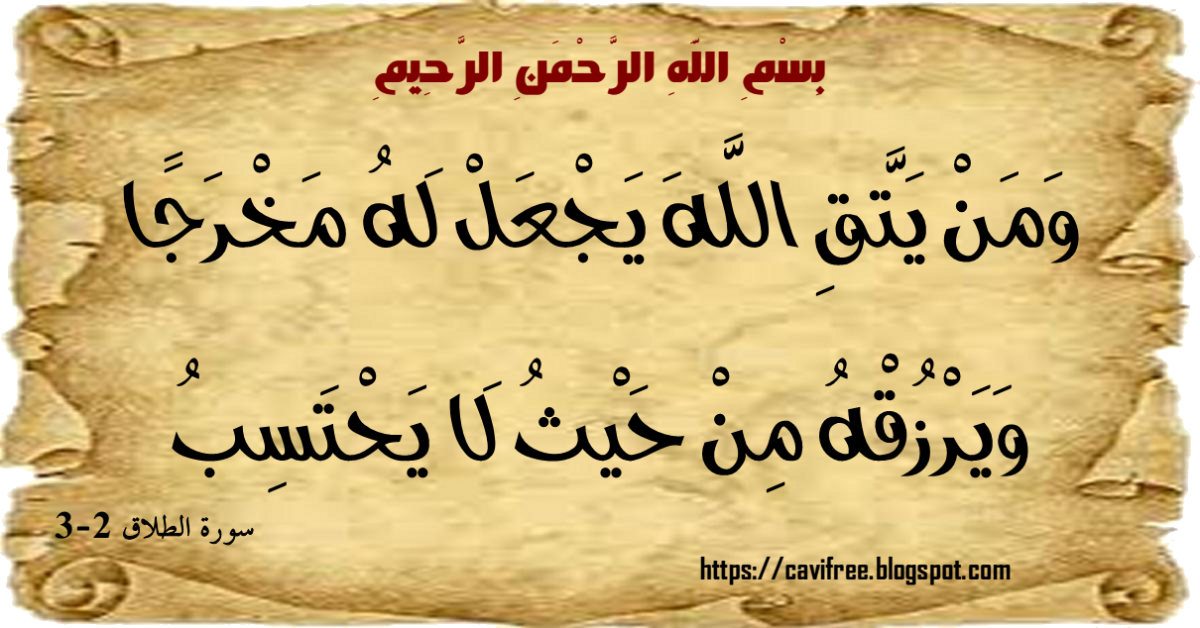 يتوضأ ويلبس ثياب طاهرة ويبدأ من ليلة الاربعاء بعد صلاة المغرب مباشرة بقراءة الاية الكريمة التالية ومن يتق الله يجعل له مخرجا ويرزقه م Pdf Books Logos Texts