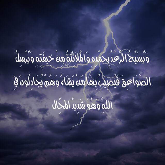 و ي س ب ح الر ع د ب ح م د ه و ال م ل ائ ك ة م ن خ يف ت ه و ي ر س ل الص و اع ق ف ي ص يب ب ه ا م ن ي ش اء و ه م ي ج اد ل ون ف ي الل ه و ه و ش د يد ال م ح ال 13 الرعد اجمل واروع الصور الاسلامية والدينية 2020