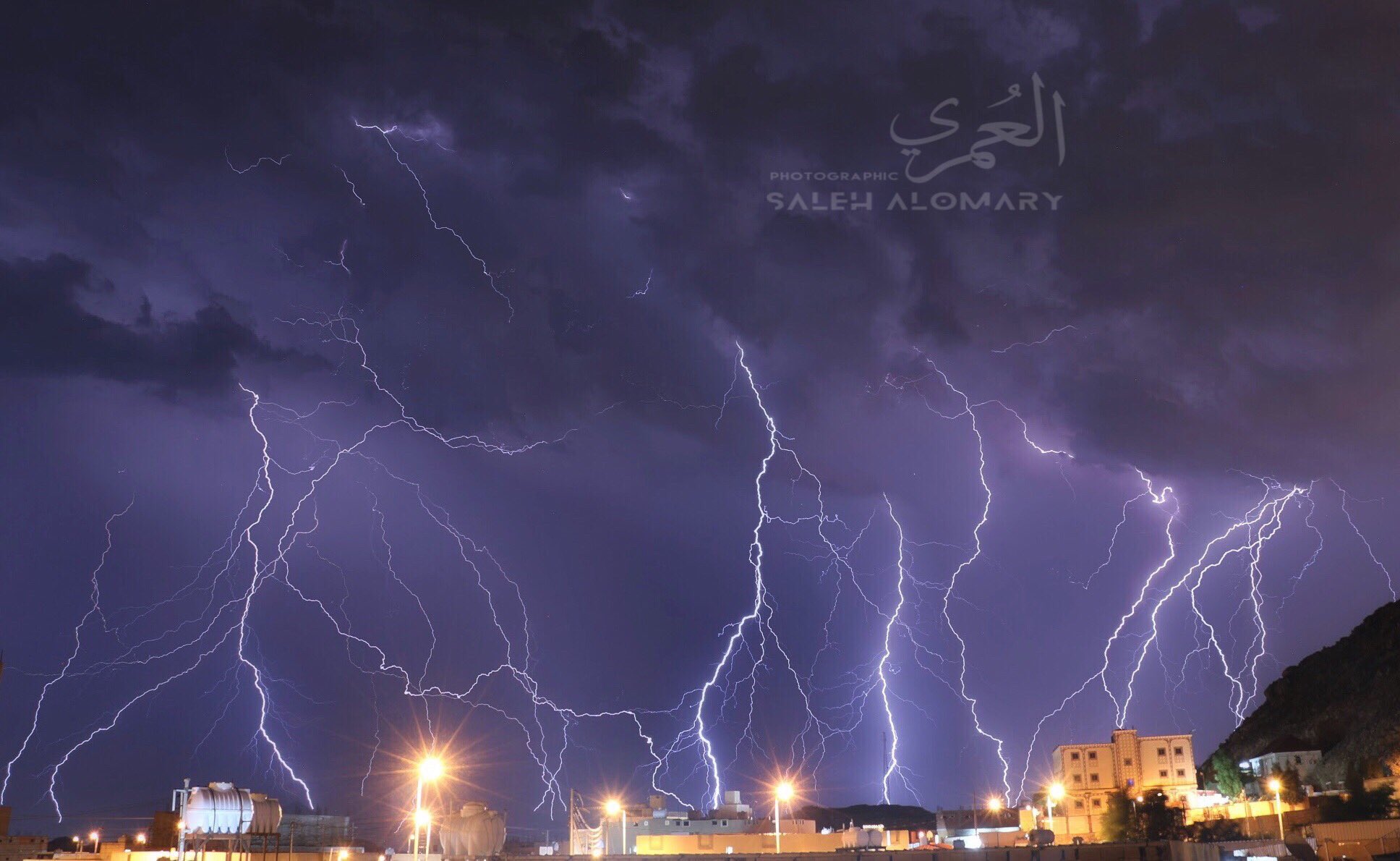 لقطة إبداعية تثير الإعجاب هكذا أضاءت البروق جبل النور مساء