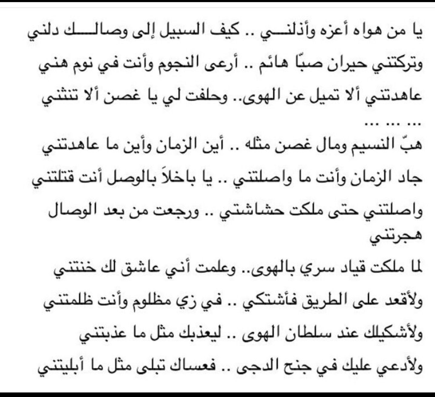 Majed Albassil On Twitter يا من هواه أعزه وأذلني كيف السبيل إلى وصالك دلني وتركتني حيران صب ا هائم ا أرعى النجوم وأنت في نوم هني ولأدعين عليك في جنح