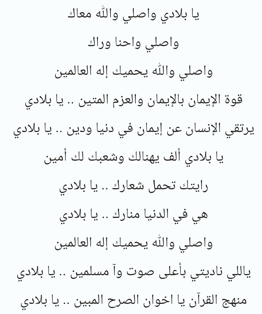 السهلي ابو عادل على تويتر من أجمل شعر الوطن يا بلادي واصلي والله معاك واصلي واحنا وراك واصلي والله يحميك إله العالمين قوة الإيمان بالإيمان والعزم المتين يا بلادي يرتقي الإنسان عن