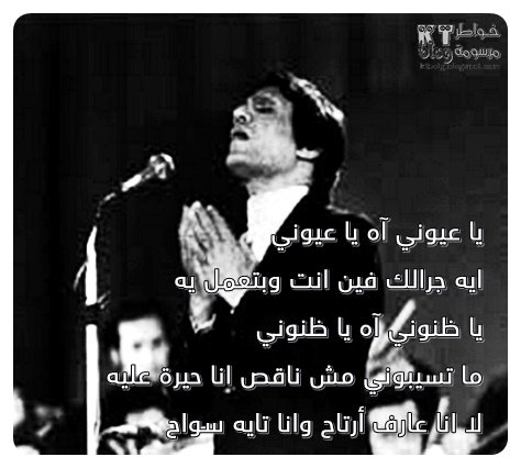 يا عيوني انتي اجمل شي ماقدر اوصفه. على ذكراك يا خل فقدته ودمع العين من بعدك ذرفته. انت حبيب عيوني ونور عيوني انت انت حبي وجنوني ودقت قلبي انت وانت قمر الليالي والحب الشاغل بالي انت يا.