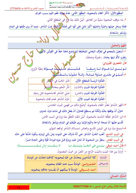 تحليل قصيدة الشاعر الصب الصف التاسع المناهج الدراسية السورية Facebook