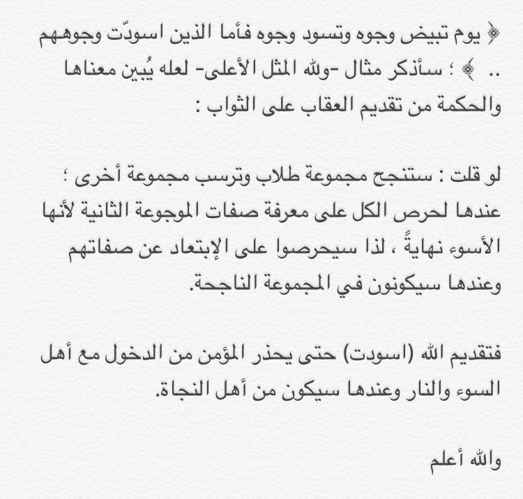 صالح السريحي مصمم Na Twitteru ي و م ت ب ي ض و ج وه و ت س و د و ج وه ف أ م ا ال ذ ين اس و د ت و ج وه ه م أ ك ف ر ت م ب ع د إ يم ان ك م ف ذ وق وا ال ع ذ اب ب م ا ك نت م ت ك ف ر ون هل كلام الله ايضا عنصرية فلها وطقطق
